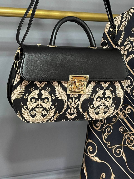 جنس کیف ترکیبی از پارچه مخمل و چرم صنعتی همراه با بند دوشی