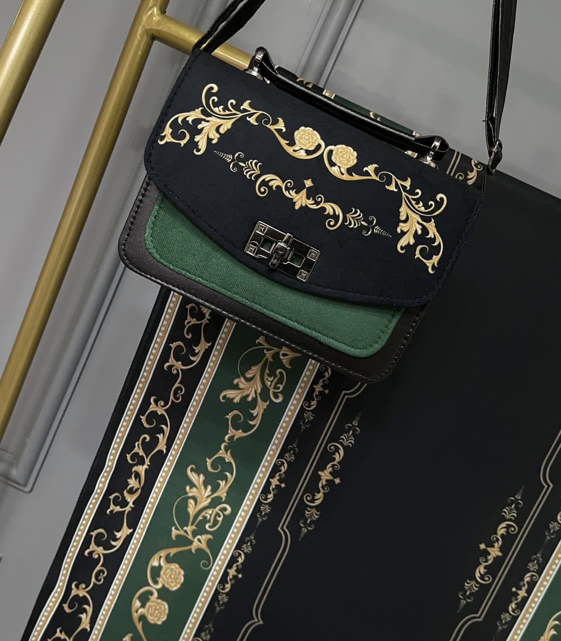جنس کیف ترکیبی از پارچه مخمل و چرم صنعتی همراه با بند دوشی