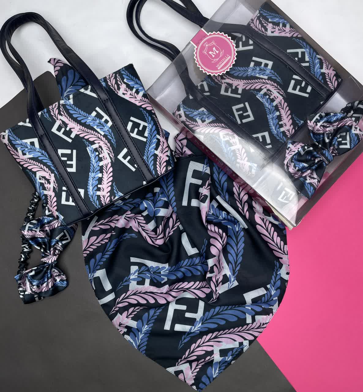 جنس کیف ترکیبی از پارچه مخمل و چرم صنعتی جنس روسری نخ اسپان ابعاد کیف ۱۷×۲۲ روسری قواره ۷۰ ست کیف و هد ۴۶۰ ست کیف و روسری ۵۰۵